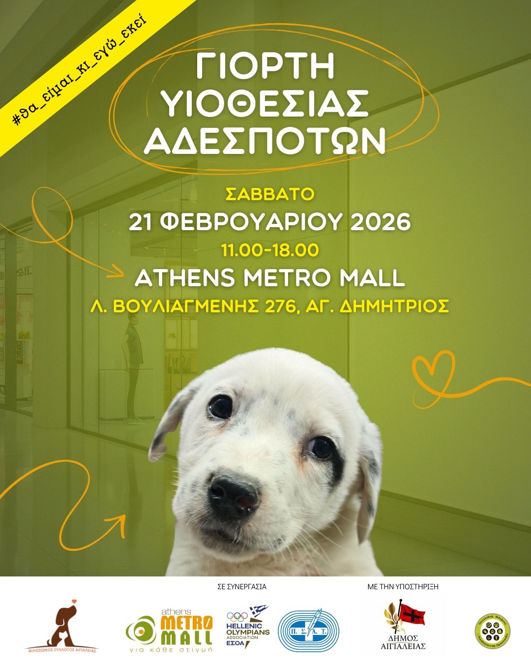 Αυτή τη φορά, θα βρίσκονται στο Athens Metro Mall (Λ. Βουλιαγμένης 276) στον Άγιο Δημήτριο, για θα περιμένουν κάθε μιρκό και μεγάλο που επιθυμεί να τα γνωρίσει, ψάχνοντας φτυσικά το παντοτινό τους σπίτι.