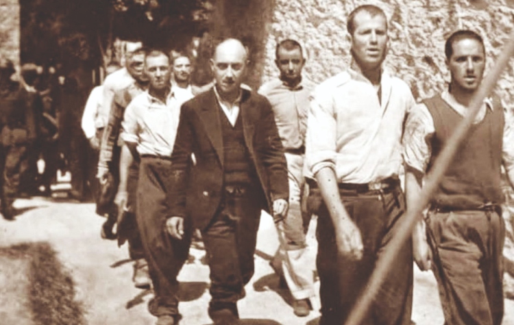 Βαδίζετε ωραίοι και αγέρωχοι, ξέροντας πού κατευθύνεστε. Δεν καταδεχτήκατε παρακλήσεις, όταν η διοίκηση Μεταξά, χειρότερη από τη ναζιστική, σας παρέδωσε στους Γερμανούς. Και περιμένοντας την Πρωτομαγιά του 1944 στην Καισαριανή, δεν ζητήσατε έλεος από τους τυράννους.