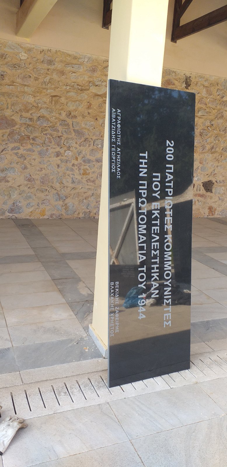 Ολοκληρώθηκαν την Τρίτη 3 Μαρτίου οι εργασίες αποκατάστασης της μαρμάρινης πλάκας στο μνημείο του Σκοπευτηρίου Καισαριανής, η οποία αναφέρεται στην εκτέλεση των 200 κομμουνιστών από τα γερμανικά στρατεύματα κατοχής την Πρωτομαγιά του 1944.
