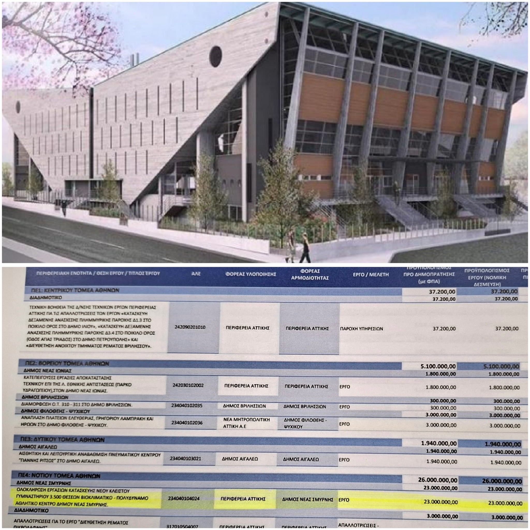 Σημαντική εξέλιξη για ένα από τα μεγαλύτερα αθλητικά έργα της Νέας Σμύρνης σηματοδοτεί η απόφαση του Περιφερειακού Συμβουλίου Αττικής (ΠΕΣΥ), το οποίο τη Δευτέρα 2 Μαρτίου ενέκρινε χρηματοδότηση ύψους 23.000.000 ευρώ για τη Β’ φάση του Κλειστού Γυμναστηρίου της οδού Αρτάκης.