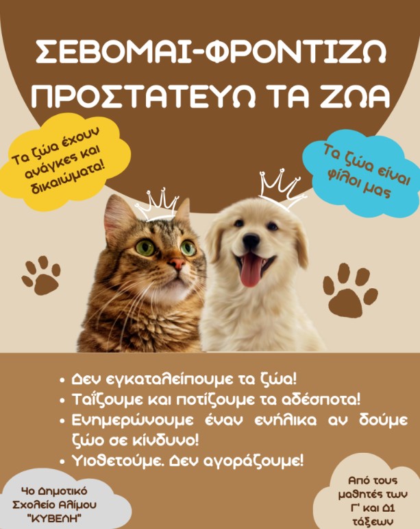 Με δική τους, λοιπόν, πρωτοβουλία, ετοίμασαν μια επιστολή με τις σκέψεις τους για έναν πιο φιλικό Δήμο προς τα ζώα και μια αφίσα που δημιούργησαν οι ίδιοι, με σκοπό την ευαισθητοποίηση των συμπολιτών τους.