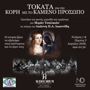 Το έργο θα παρουσιαστεί την Τετάρτη 1 και Πέμπτη 2 Απριλίου 2026 στον χώρο τεχνών Auditorium (Σίνα 2-4, Αθήνα).