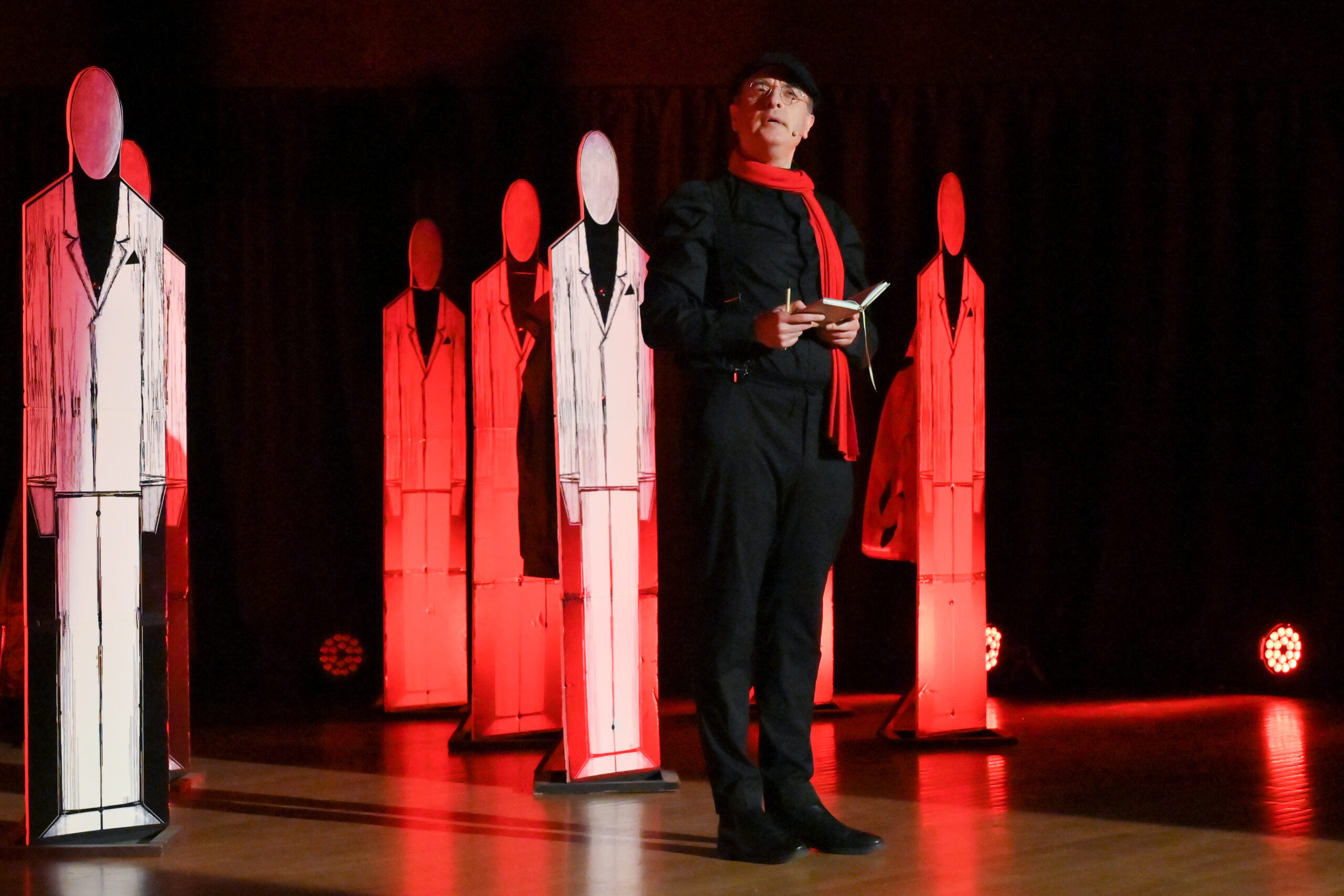 Ο δημιουργός και μοναδικός ερμηνευτής του έργου, Γιώργος Γαλίτης, παρουσίασε έναν καταιγιστικό μονόλογο μαύρης κωμωδίας, ενσαρκώνοντας δεκατρείς διαφορετικούς χαρακτήρες.