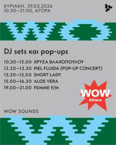 Το Σάββατο 28 και την Κυριακή 29 Μαρτίου αγαπημένες Ελληνίδες DJs ανεβαίνουν στα decks του WOW Marketplace, που θα διεξάγεται στην Αγορά του Κέντρο Πολιτισμού Ίδρυμα Σταύρος Νιάρχος (ΚΠΙΣΝ), στέλνοντας ένα ηχυρό μήνυμα για την έμφυλη ισότητα.
