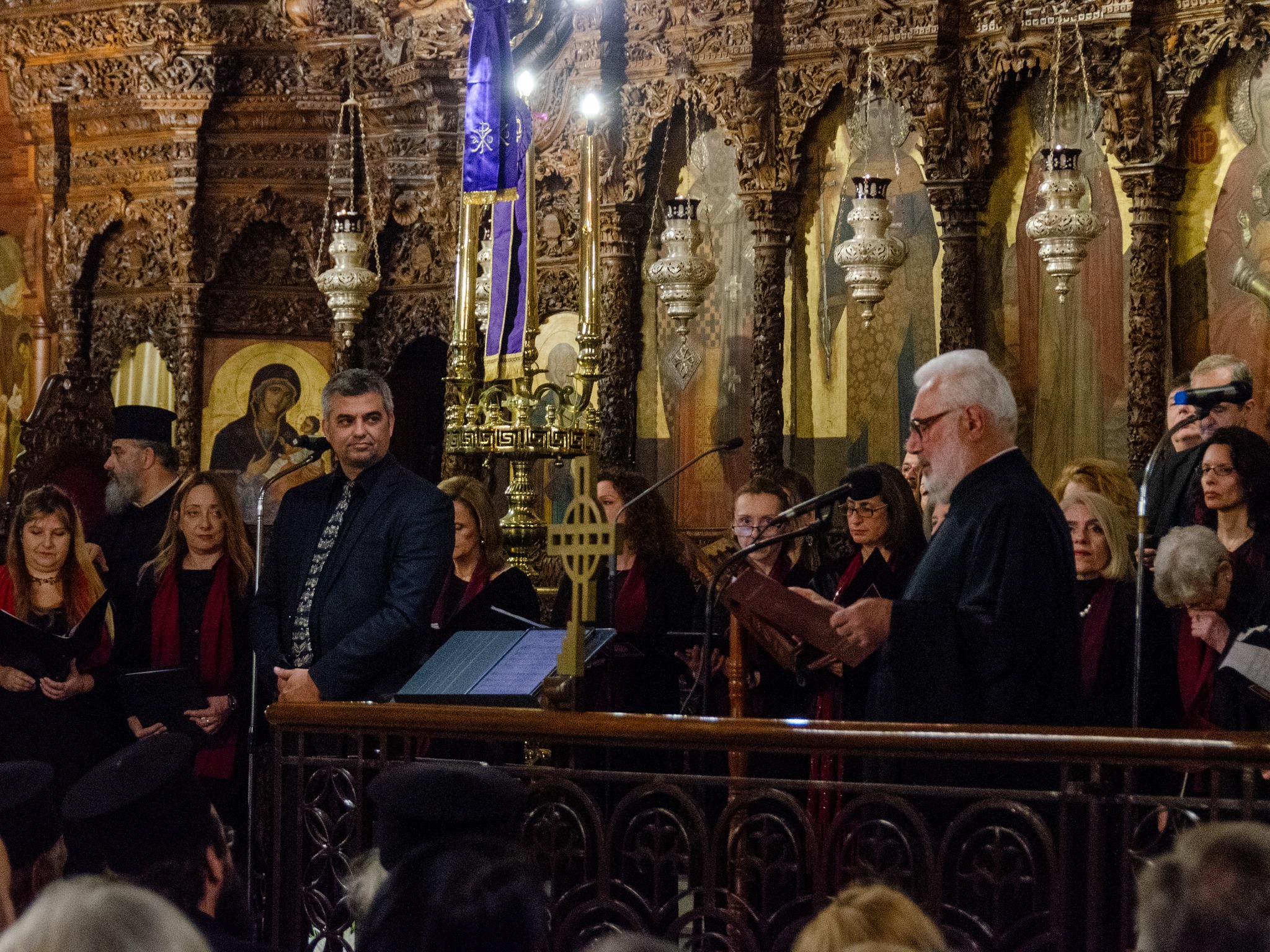 Εκατοντάδες πιστοί και δημότες κατέκλυσαν τον ναό, βιώνοντας μια μουσική εμπειρία αφιερωμένη στα Θεία Πάθη. Βυζαντινοί ύμνοι, τροπάρια και εκκλησιαστικές μελωδίες απέδωσαν με ιδιαίτερη ευαισθησία η Βυζαντινή Χορωδία της Ιεράς Μητρόπολης Νέας Σμύρνης, υπό τη διεύθυνση του Αντώνιου Παπαδόπουλου, η χορωδία του Δήμου Νέας Σμύρνης «SMYRNA», υπό τον μαέστρο Γεωργίου Ζιάκα, καθώς και η Χορωδία της Εμπορικής Τράπεζας, υπό τη διεύθυνση του Σταύρου Μπερή.