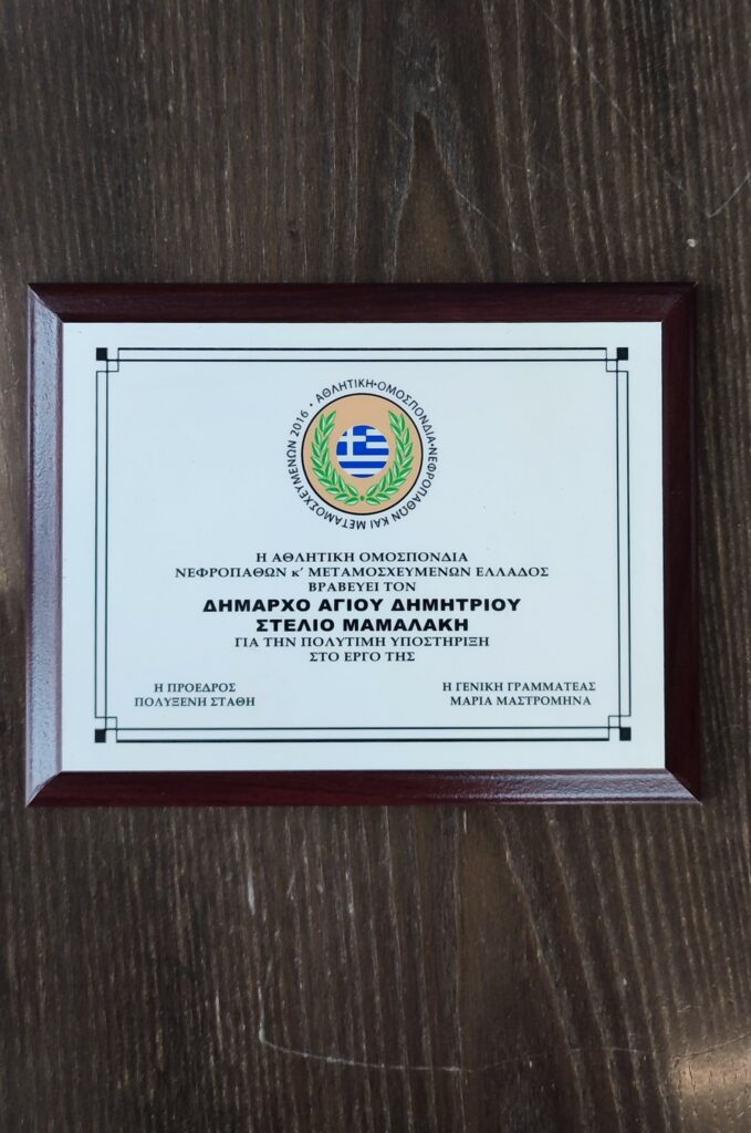 Το ίδιο βράδυ, σε ειδική εκδήλωση που διοργάνωσε η Ομοσπονδία Νεφροπαθών και Μεταμοσχευμένων στο Ράλλειο Γενικό Λύκειο Πειραιά, τιμήθηκαν ο δήμαρχος Στέλιος Μαμαλάκης και ο αντιδήμαρχος Αθλητισμού για τη συμβολή τους στην επιτυχή διεξαγωγή των αγώνων στο Δημοτικό Στάδιο της πόλης.