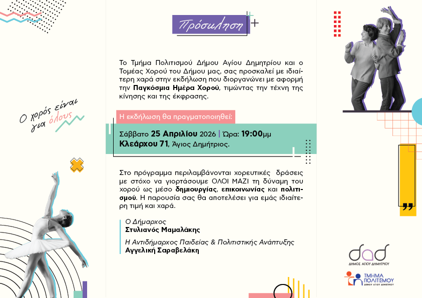 Ο Δήμος Αγίου Δημητρίου τιμά την Παγκόσμια Ημέρα Χορού