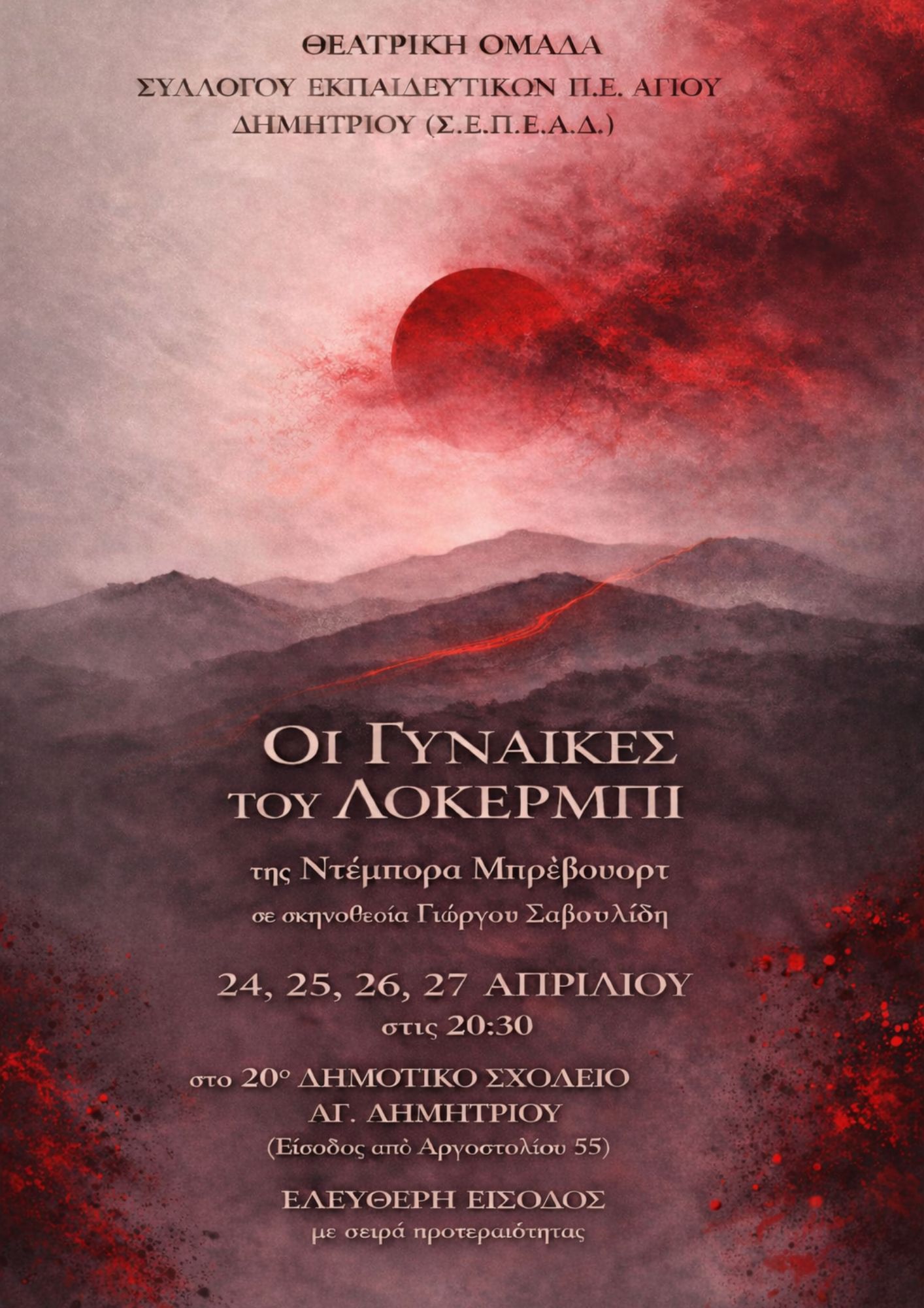 Η θεατρική ομάδα εκπαιδευτικών του Συλλόγου Εκπαιδευτικών Π.Ε. Αγίου Δημητρίου (Σ.Ε.Π.Ε.Α.Δ.), παρουσιάζει το έργο «Οι Γυναίκες του Λόκερμπι» της Deborah Brevoort.