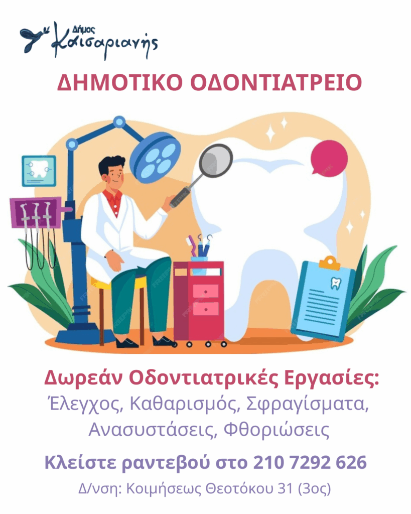 Ο Δήμος Καισαριανής, παραμένοντας πιστός στη δέσμευσή του για την ενίσχυση της δημόσιας υγείας, συνεχίζει τη λειτουργία του Δημοτικού Οδοντιατρείου, προσφέροντας δωρεάν περίθαλψη και φροντίδα σε κατοίκους όλων των ηλικιών.
