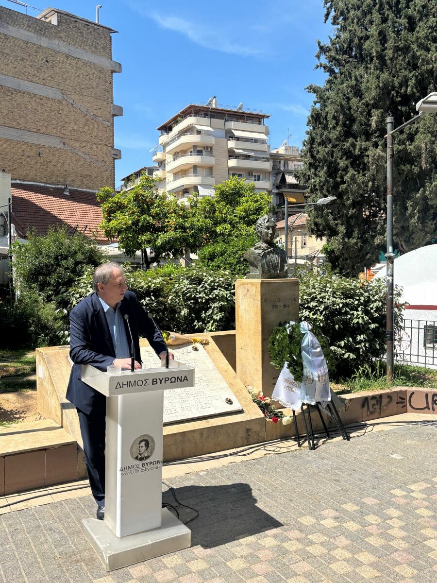 Τον πανηγυρικό της ημέρας εκφώνησε ο υφυπουργός Εξωτερικών Χάρης Θεοχάρης, ενώ τον Δήμο Βύρωνα εκπροσώπησε ο δήμαρχος Αλέξης Σωτηρόπουλος.