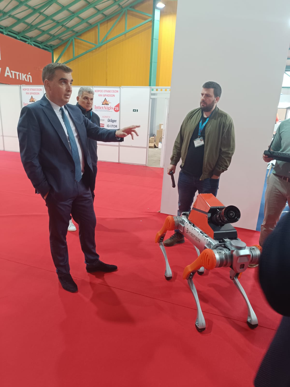 Ο Γ. Κωνσταντάτος περιηγήθηκε στους χώρους της έκθεσης, παρακολουθώντας παρουσιάσεις επιχειρησιακών δυνατοτήτων και επιδείξεις εξειδικευμένου εξοπλισμού, εφαρμογών τεχνητής νοημοσύνης και σύγχρονων μέσων διαχείρισης εκτάκτων αναγκών.